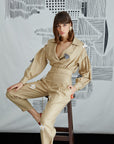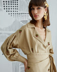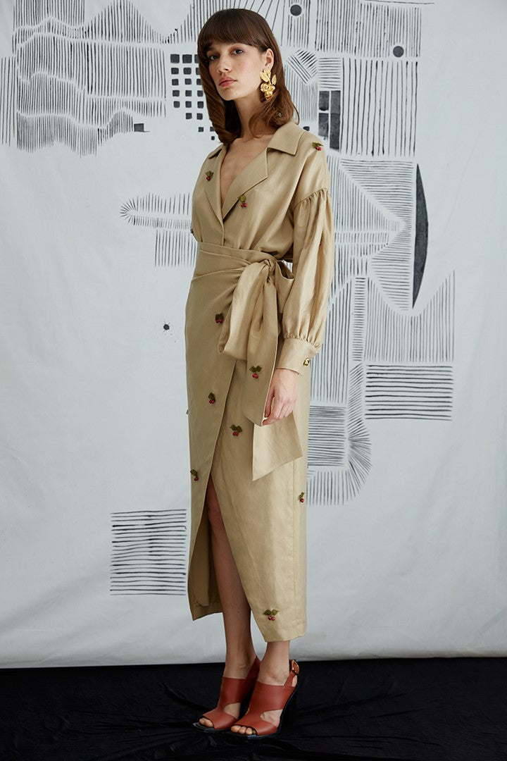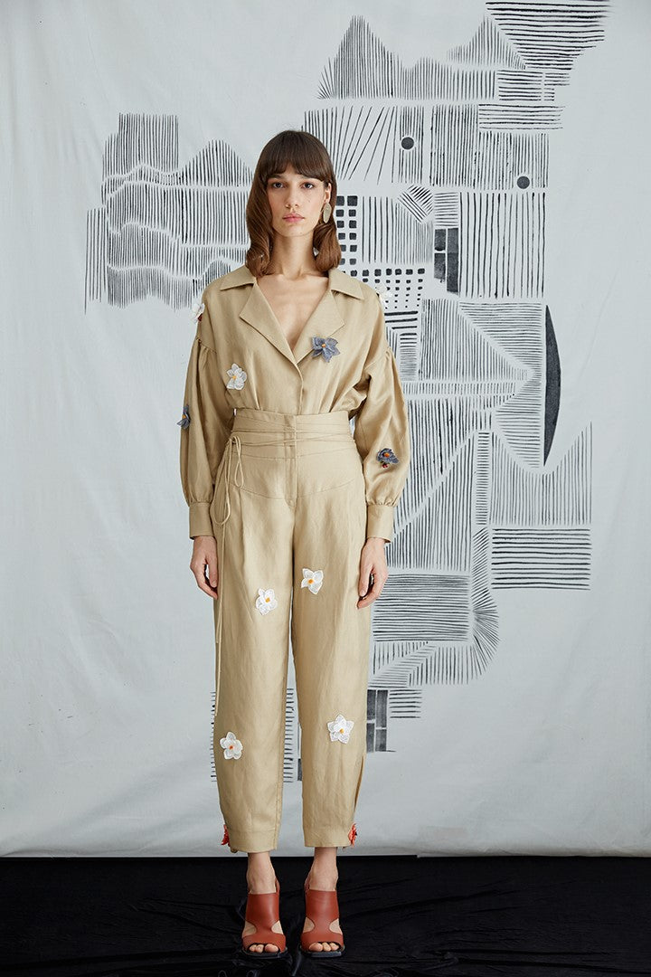 Double breasted shirt with cherry or lotus needle lace.
