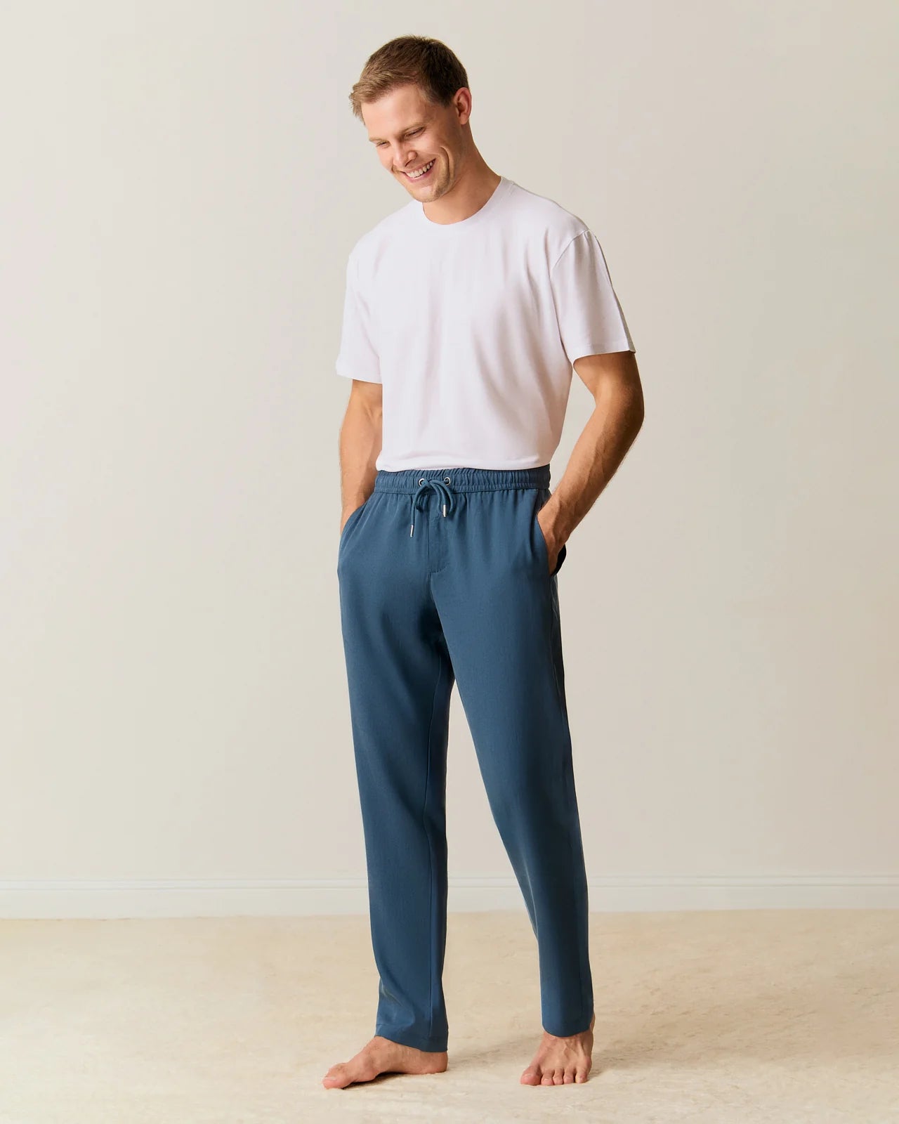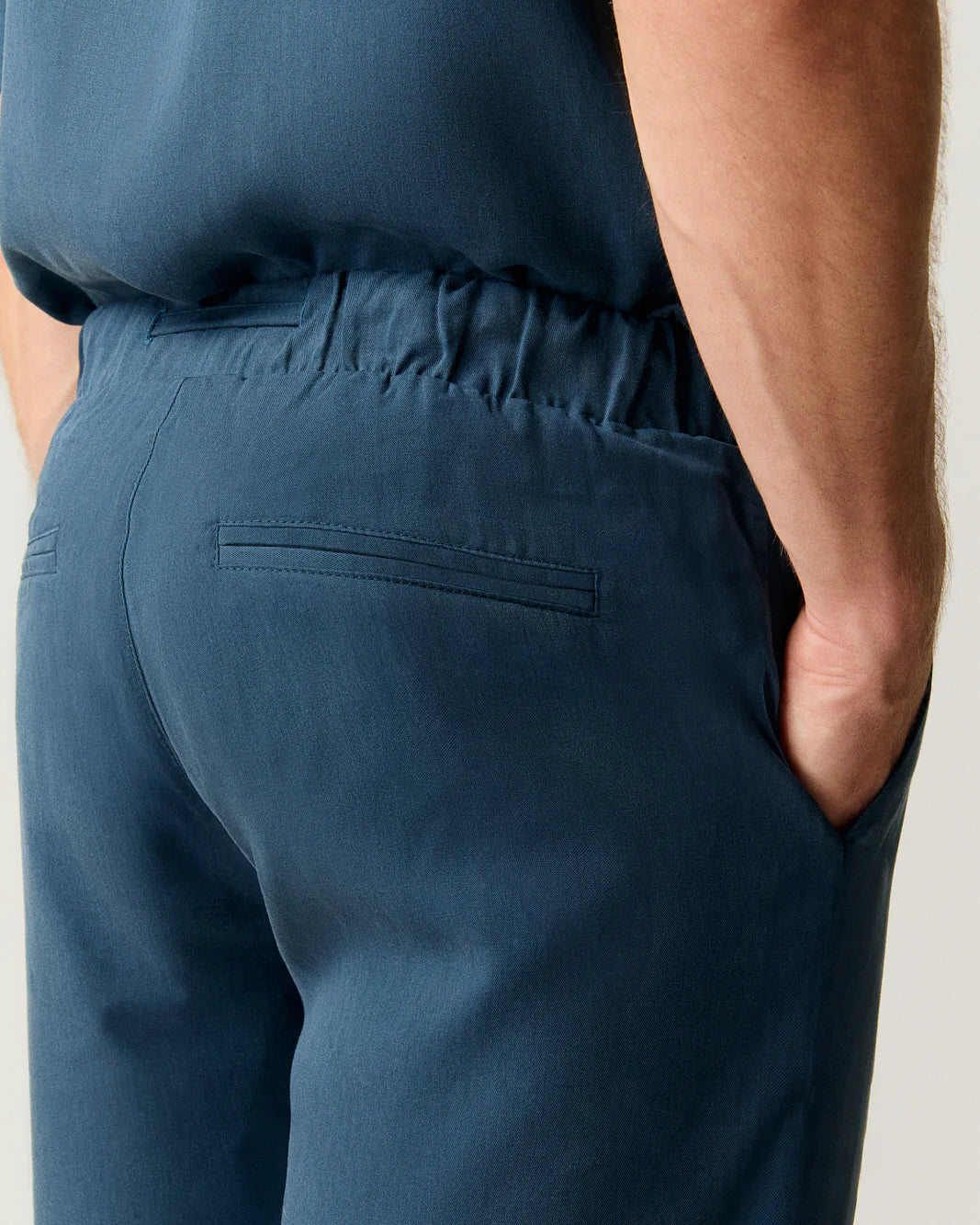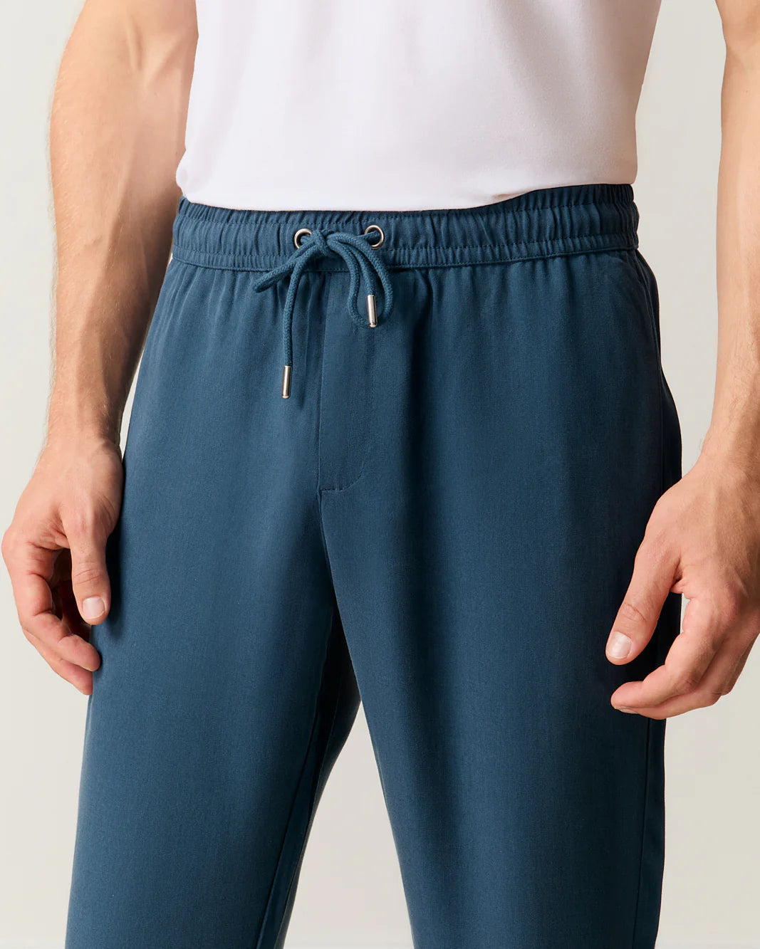 Elastic waistband with adjustable cords and a minimalist, relaxed silhouette for versatile style.